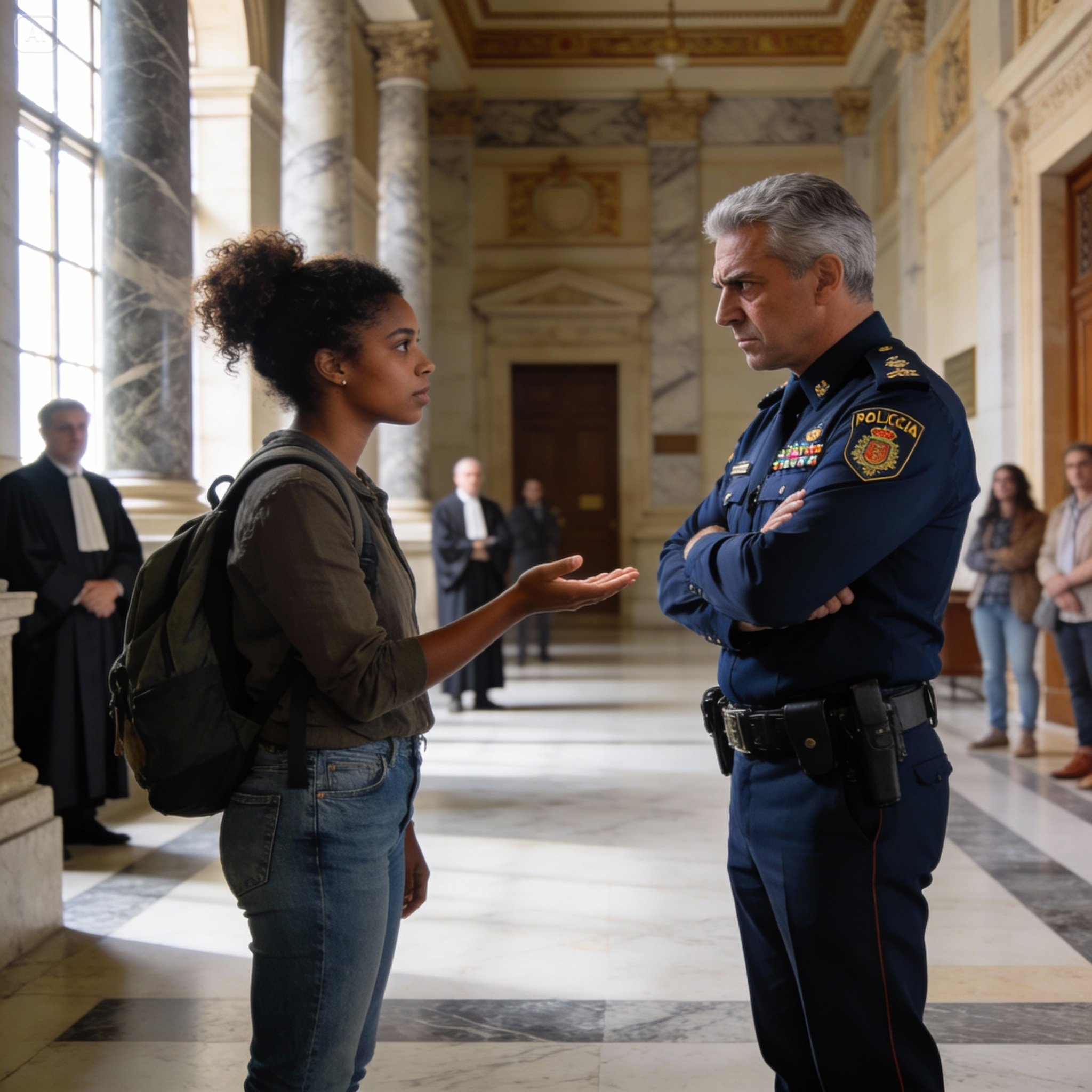 Había llegado veinte minutos antes. Sin protocolo, sin coche oficial. Simplemente entró, miró el directorio en la pared y trató de ubicarse. Juzgado de lo Penal número 4, segunda planta. Pero el edificio era un laberinto de pasillos y escaleras de piedra. Se había perdido en la planta baja y, al volver sobre sus pasos, vio al agente.