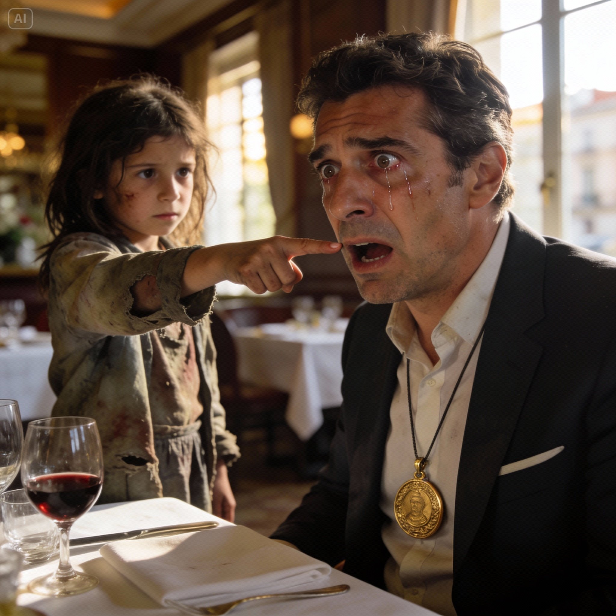 Estaba almorzando en el restaurante más caro de Madrid cuando una niña pobre señaló el medallón de mi esposa fallecida y dijo cinco palabras que detuvieron mi corazón y destaparon la traición más cruel de mi propia familia